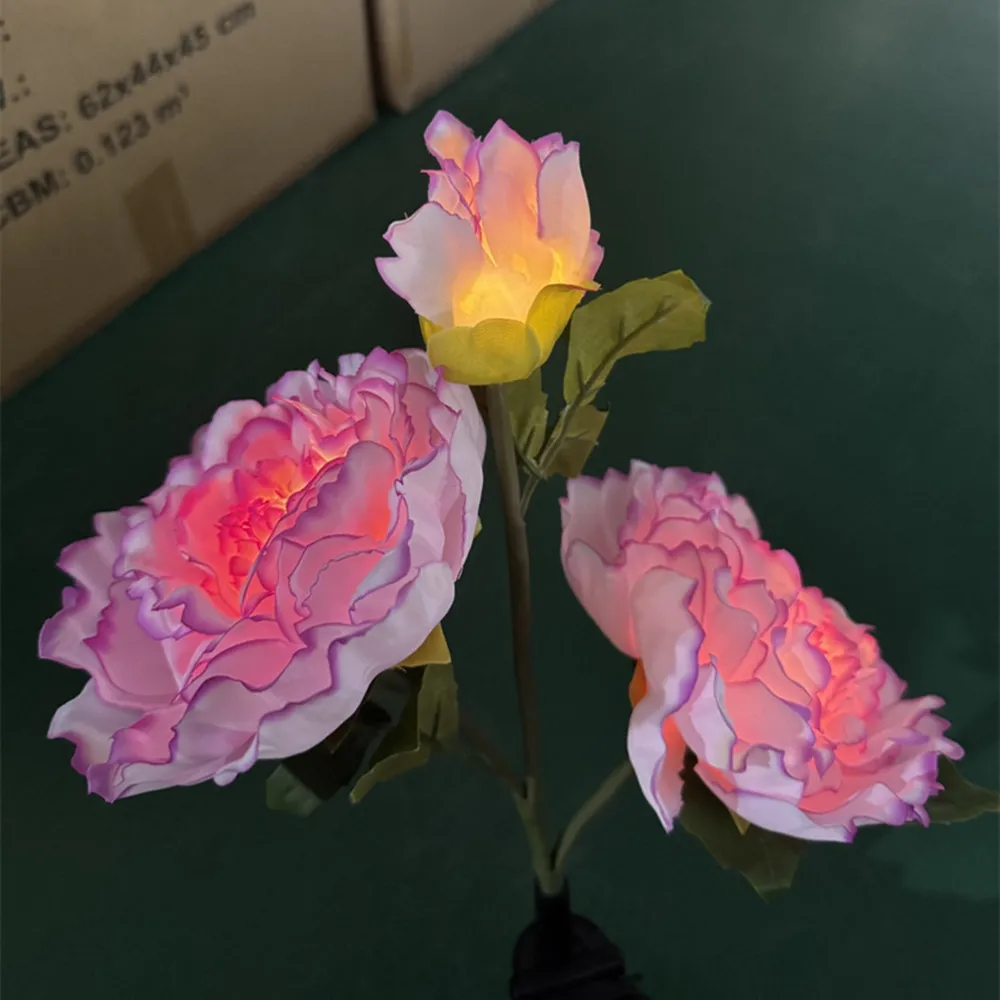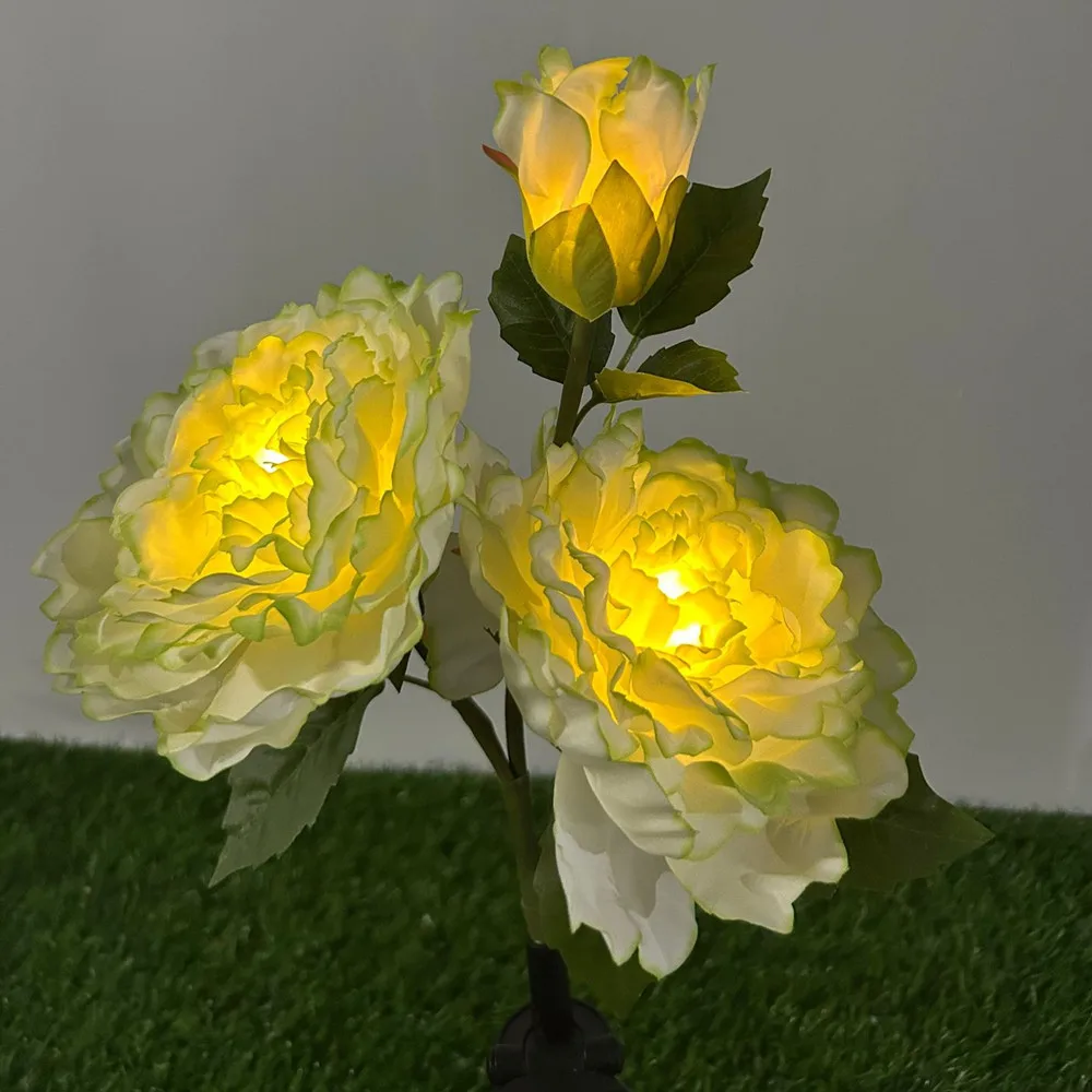 Lampe solaire pivoine à LED (1/3 tête) pour jardin, cour, allée, éclairage d’ambiance